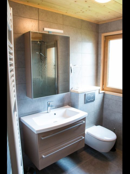 L'appartamento è al piano terra e ha una terrazza privata, mobili da giardino e una splendida vista sulla montagna. Grande parcheggio privato.