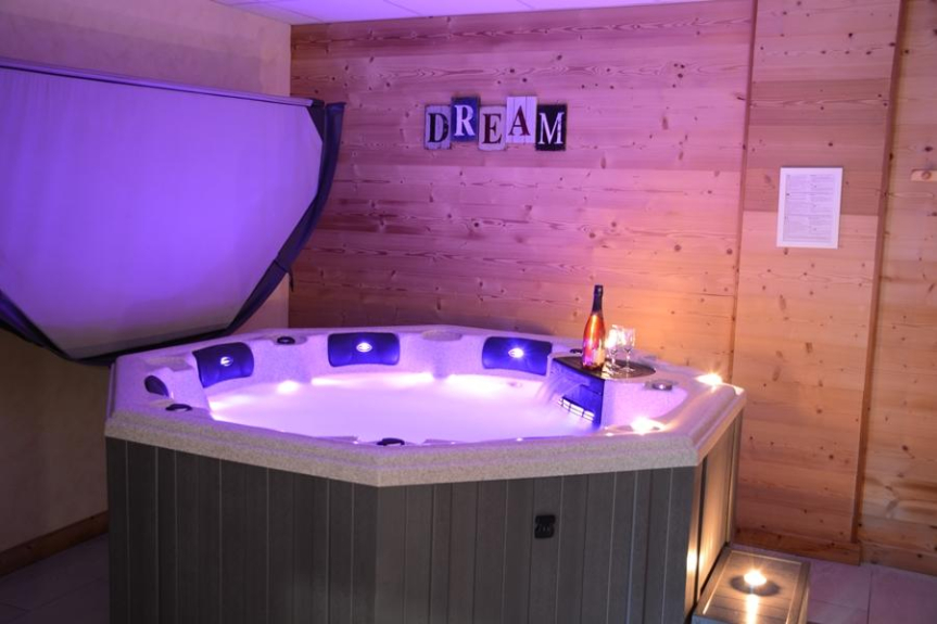 La zona relax con jacuzzi e sauna privata offre calma e relax dopo lo sci.