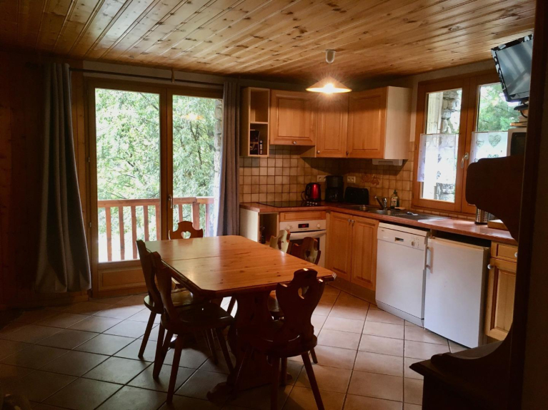 Appartamento per 6 persone situato ai piedi delle piste. Una cucina-sala da pranzo, tre camere da letto: una matrimoniale, una con due letti a castello e una con due letti singoli. Il bagno (vasca) e la toilette sono separati.