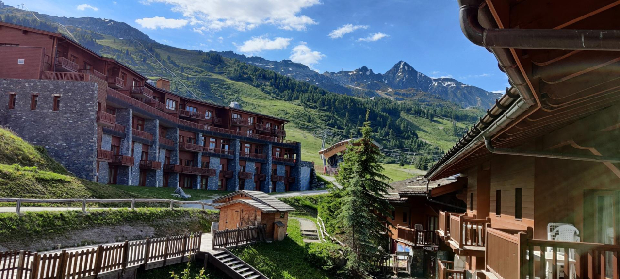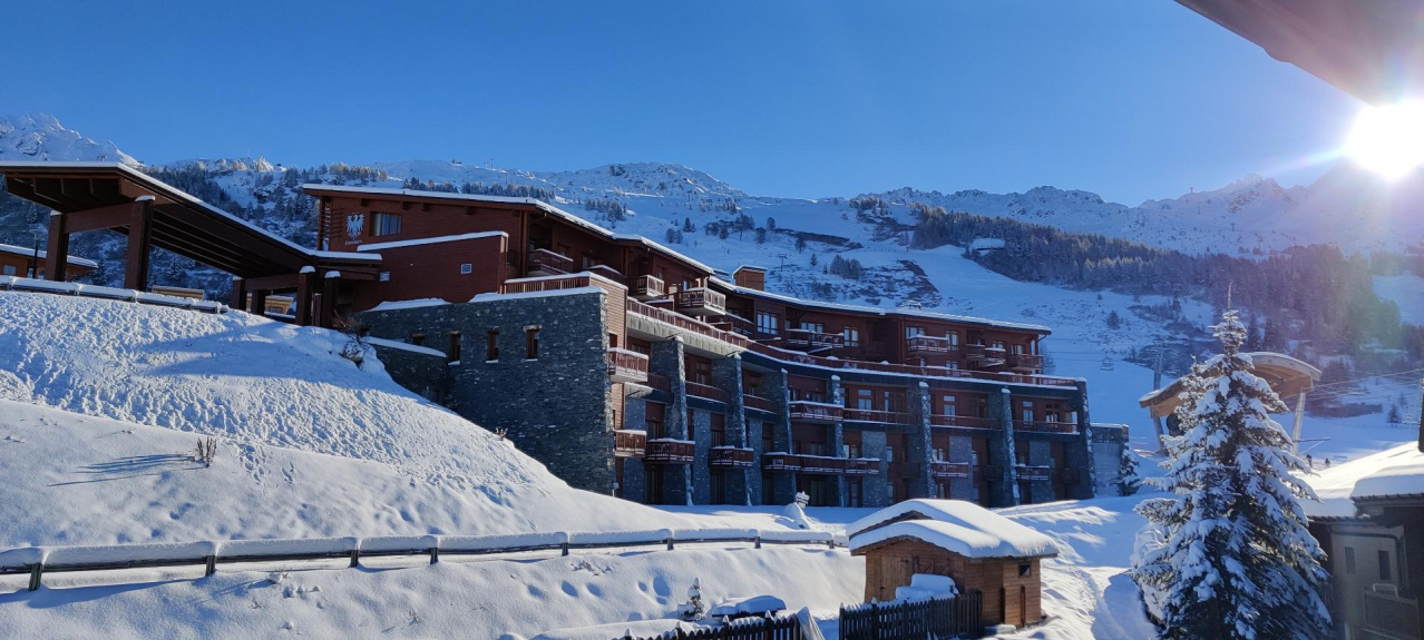 Residenza ALPAGES DU CHANTEL 1, situata sulle alture della stazione a 1850m di altitudine. Dal balcone, vista sul Monte Bianco. Voto 4 Cristaux Paradiski.