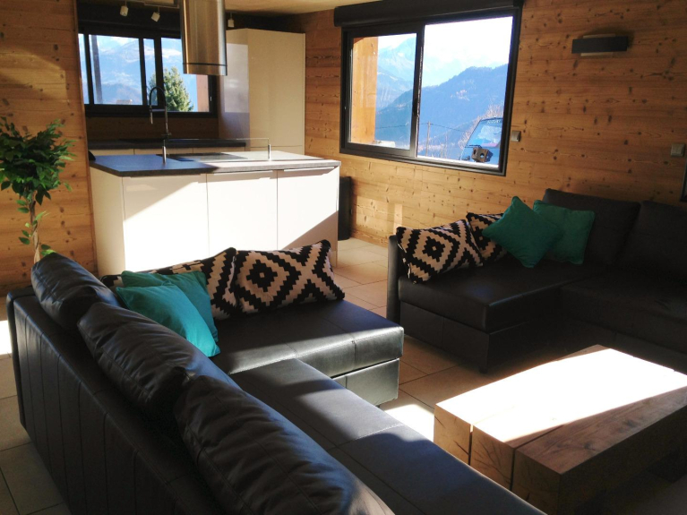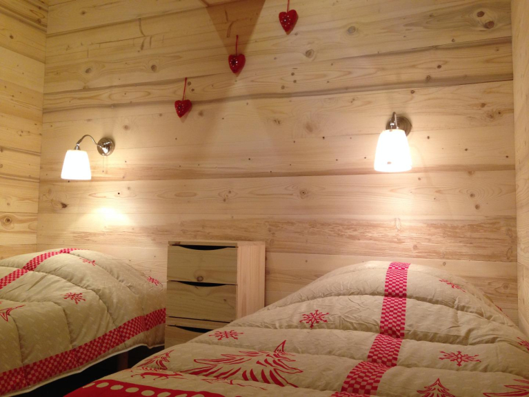 L'alloggio: Appartamento di 100 m² in uno chalet individuale ai piedi delle piste del comprensorio sciistico di Valmorel / Saint Francois Longchamp e Doucy Station che può ospitare fino a 10 persone.Grande soggiorno / reception di 50 m² tra cui una cucina US aperta al soggiorno.2 2 camere da letto con un letto matrimoniale1 camera da letto con due letti a castello1 camera da letto con 2 letti singoli2 divani letto (soggiorno)cioè 8 persone in camera da letto per un totale di 10 posti letto.2 bagni con doccia e 2 bagni separati.cucina completamente attrezzata: lavastoviglie, forno, piano cottura elettrico, microonde, frigorifero, congelatore, lavatrice, macchina per il caffè, 2 macchine per raclette, 2 macchine per fonduta.televisione e lettore DVD.Riscaldamento a pavimento, completamente automatico (+ riscaldatori individuali nelle camere da letto)Un grande tavolo da pranzo è disponibile (per ospitare 10 persone insieme e facilmente)Posizione & località: Questo chalet è situato ai piedi delle piste sulle alture della stazione di Doucy (stazione familiare del comprensorio sciistico di Valmorel / Saint François Longchamp) 1400 metri sul livello del mare e offre un accesso diretto alle piste.Tranquillo e ben esposto, lo chalet è sul bordo del bosco, offrendo una vista senza ostacoli della montagna, per un'atmosfera molto esotica! La seggiovia passa davanti allo chalet e la pista dietro di esso (30 metri). La stazione è a 10 minuti a piedi (sentiero pedonale), 2 minuti con gli sci e 2 minuti in auto.In questa stazione, troverete tutti i beni e servizi per il vostro soggiorno: noleggio di materiale da sci (skiset & intersport), supermercato: Sherpa, 3 ristoranti savoiardi, ufficio del turismo, ESF (scuola di sci francese), acquisto di skipass così come un asilo nido.Condizioni, precauzioni e pagamento:Al fine di evitare i tradizionali ingorghi del sabato, i noleggi sono da domenica a domenicaCheck in: 4pm - Check out: 10amLo chalet è completamente non fumatori.No EVG - EVFLI "plus" degli chalet di Lesne:Solo in stagione (luglio-agosto e gennaio-febbraio-marzo-aprile): - Consegna di pane e croissant allo chalet ogni mattina - servizio gratuito- Consegna e fatturazione del noleggio di sci allo chalet il giorno del vostro arrivo - servizio gratuito- Sauna esterna per 8 persone (noleggio settimanale supplementare)Trasporto e accesso :In strada: raggiungere Chambery poi Alvertville con la A43, seguire la superstrada RN 90 verso Moutiers, prendere l'uscita 37 per La lechere, Saint Oyen, Doucy-Station. Nella stazione di Doucy, seguire "piscine d'été", "lotissement chantemerle" si arriva su un parcheggio sotto la seggiovia: siete arrivati.gare SNCF : Gare de Moutiers - Brides-les-bains. Attività estive e invernali : All'ufficio turistico della stazione di Doucy, troverete molte attività proposte dalla stazione (a 10 minuti dallo chalet): Ping pong, parco giochi per bambini, campi da calcio e basket (stadio comunale), beach volley, piscina, tiro con l'arco, campi da tennis, escursioni, mountain bike, parapendio, arrampicata, deltaplano, ecc ... A 25 minuti dallo chalet, le attività sono : Rafting, canyoning, rafting in canoa, hydro-speed, airboat, stand-up paddle, via ferrata, ecc ...In inverno: sci alpino, sci di fondo, racchette da neve, asilo nido per bambini, slittino, ecc ...Il centro termale di La Léchère si trova a 15 minuti di auto: Spa, Sauna e possibilità Aqualudic
