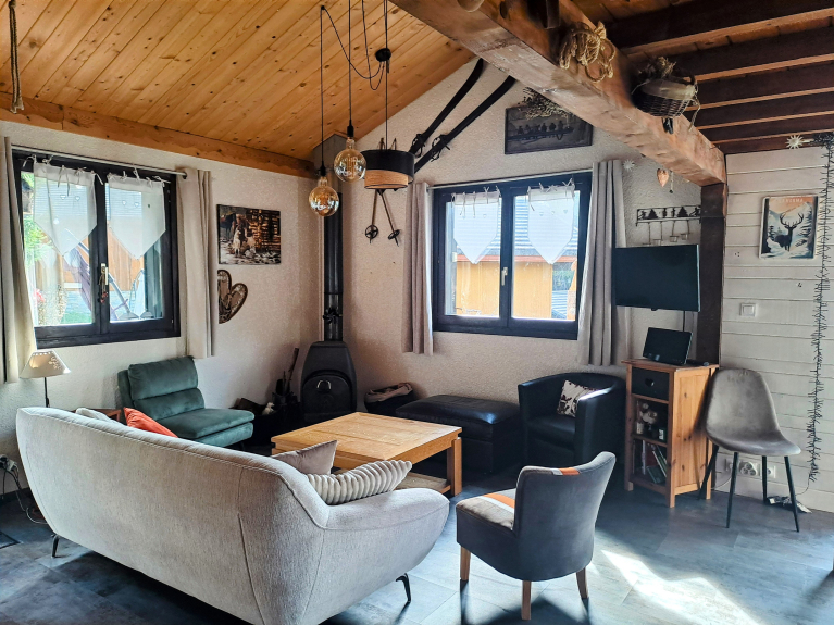 Chalet individuale per 7 persone, arredato, atmosfera di montagna, perfettamente attrezzato, situato a 300 metri dal centro della stazione La Norma e a 200 metri dalle piste