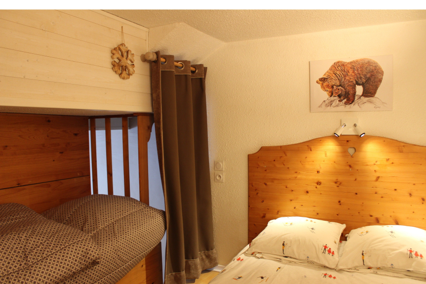 Soppalco chiuso con 1 letto matrimoniale 140x190, 1 letto singolo 80x180 e 1 letto per bambini disponibile.