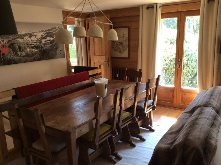 Un deposito riscaldato per sci, scarponi, mute e altri oggetti di fronte all'ingresso dell'appartamento. Un soggiorno, sala da pranzo con camino che si apre su una cucina completamente attrezzata (forno, piano cottura a induzione, microonde, fridg, congelatore ecc ecc) che si apre su una terrazza di 80 m2 . Una camera da letto principale con il proprio bagno (vasca e doccia). Altre due camere da letto con un bagno (doccia e WC). Il tutto in un'atmosfera calda e montana.