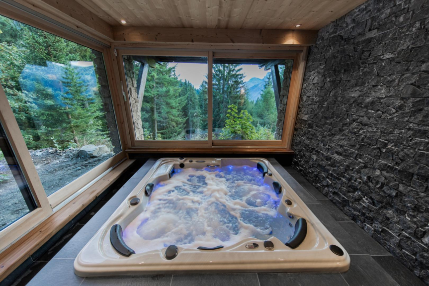 Il suo superbo soggiorno permetterà a tutti di riunirsi dopo una grande giornata di sci/escursionismo con la sua cucina moderna, la sua spaziosa sala da pranzo e la sua sala home cinema. Per un comfort ancora maggiore, si può godere il tavolo da biliardo nella nostra sala giochi o rilassarsi nella vasca idromassaggio con vista sulle montagne.