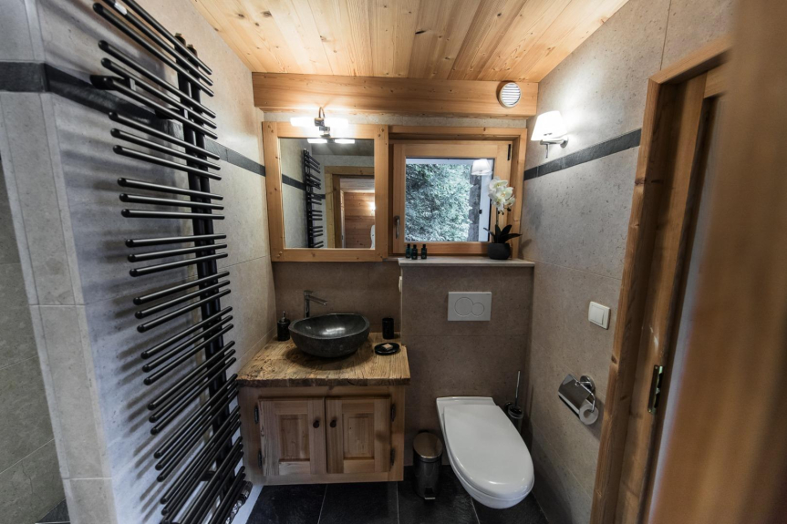 L'accesso allo chalet è attraverso un piccolo sentiero forestale di cinquanta metri. Per la vostra comodità, l'attrezzatura da sci sarà conservata in una stanza dedicata ai piedi delle piste con riscaldamento per i vostri scarponi. L'inizio delle piste è a 1,5 km in macchina.