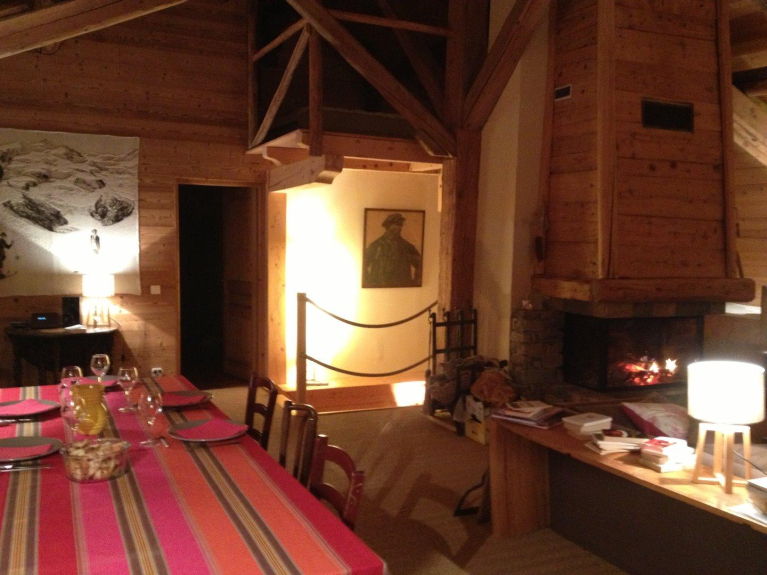 Al primo piano, troverete un soggiorno molto spazioso e luminoso con un grande bovindo che si apre su un balcone dove ci si può sedere e godere della vista (Mont Mirantin, Pierra Menta). Questa stanza comprende anche un bel camino centrale e tutto il comfort che ci si aspetta dopo una buona giornata all'aria aperta.