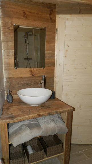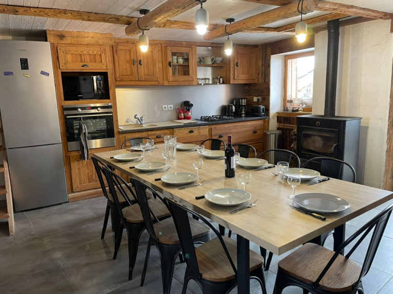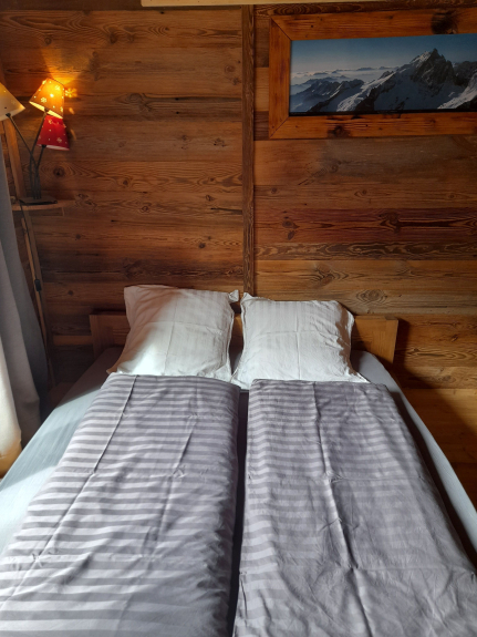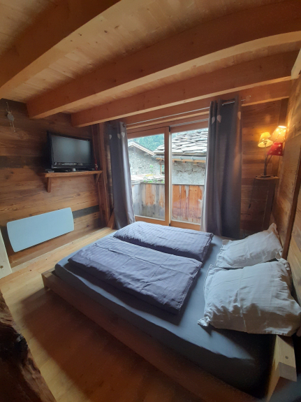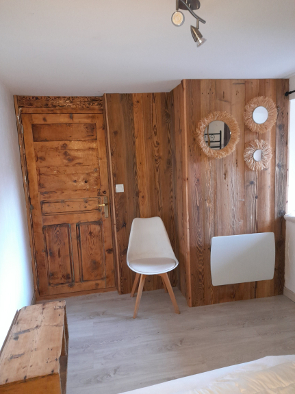 Questo alloggio, adiacente al nostro chalet, è stato ristrutturato dai proprietari con materiali locali (legno, pietra e ardesia). Può ospitare fino a 4 persone (ideale per una coppia o una famiglia con bambini) e ha una cucina completamente attrezzata, un accogliente soggiorno in legno antico, una grande camera da letto sotto il tetto e un bagno/WC.