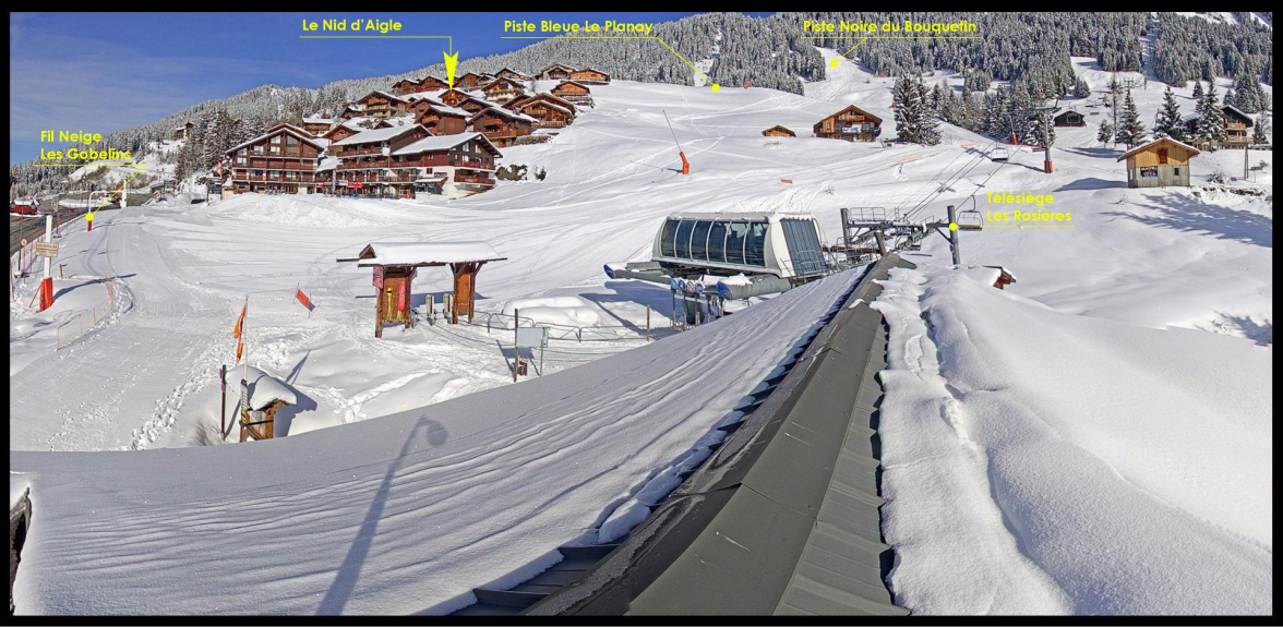 È vicino alla pista di sci alpino (150 m) e alla funivia (300 m con gli sci), che porta in pochi minuti in cima al Mont Bisanne (1940 m).