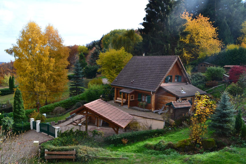 Lo chalet si trova in una piccola valle in mezzo alla natura sul bordo di un piccolo ruscello circondato da un bellissimo giardino fiorito di 10 are recintato in una piccola valle molto tranquilla, ideale per ricaricare le batterie o fare escursioni o visitare i bei villaggi dell'Alsazia, la strada del vino, Strasburgo o Colmar a 40 km