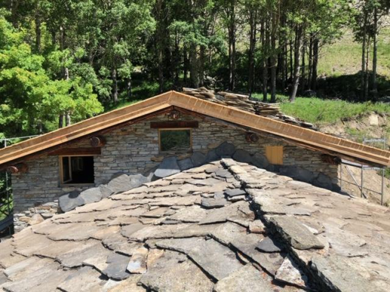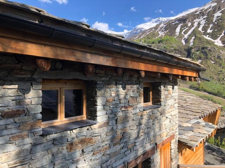 In un affascinante chalet in pietra e ardesia, l'appartamento è stato completamente rinnovato in uno stile contemporaneo di montagna.