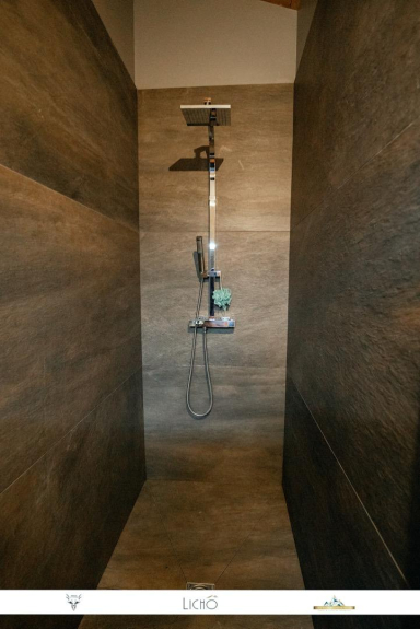 - Un bagno con una doccia italiana e un doppio lavabo e un asciuga asciugamani.