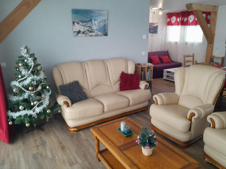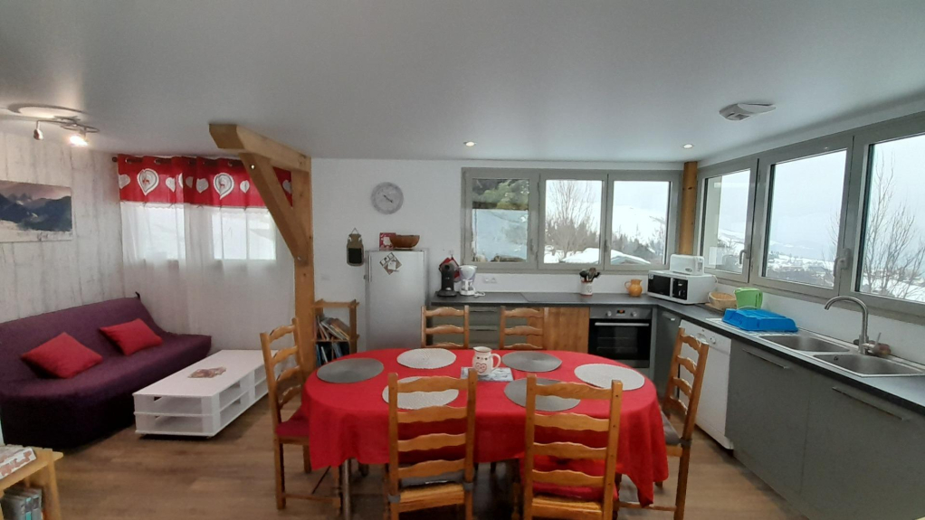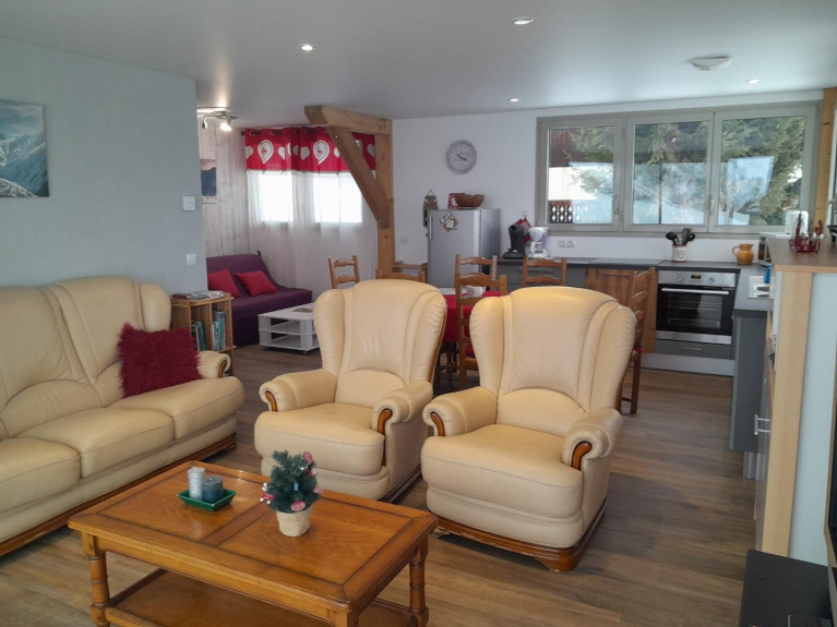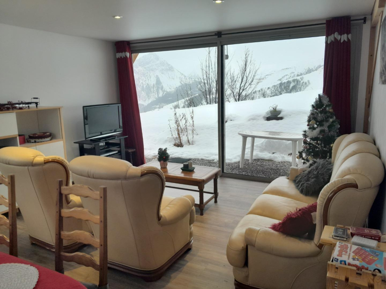 Appartamento a livello del giardino in uno chalet indipendente (costruito nel 2018), zona residenziale tranquilla con vista panoramica sulle montagne (di fronte alle Aiguilles d'Arves).