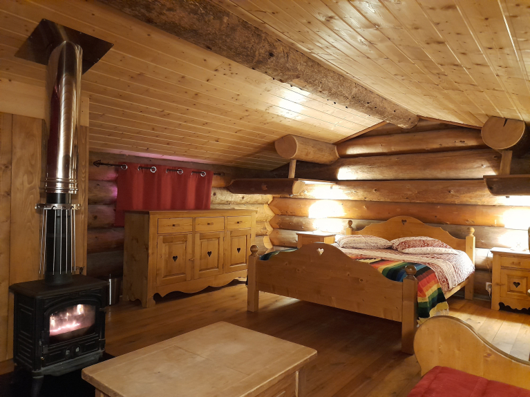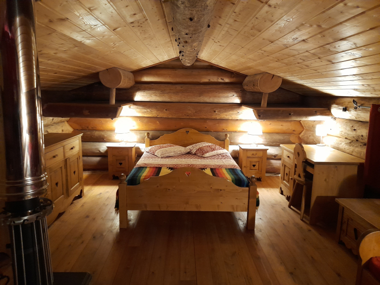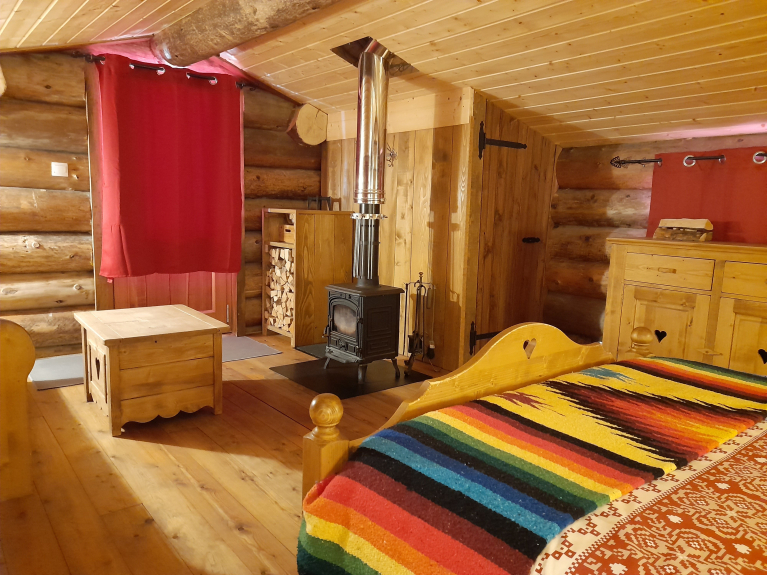 I mobili, gli accessori e la decorazione rimangono nello spirito dello chalet. Piccolo serbatoio d'acqua con una coppa dell'olio in acciaio inossidabile. Biancheria da letto ecologica, fatta a mano, 100% pura lana.