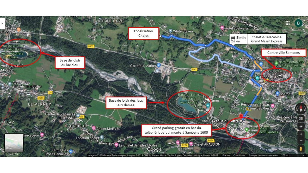 Samoëns è un villaggio di montagna situato a 650 m di altitudine. L'accesso al comprensorio sciistico del Grand Massif avviene tramite una comoda gondola vicino al villaggio di Samoëns che porta fino a Samoëns 1600 e direttamente all'inizio delle piste e delle scuole di sci.