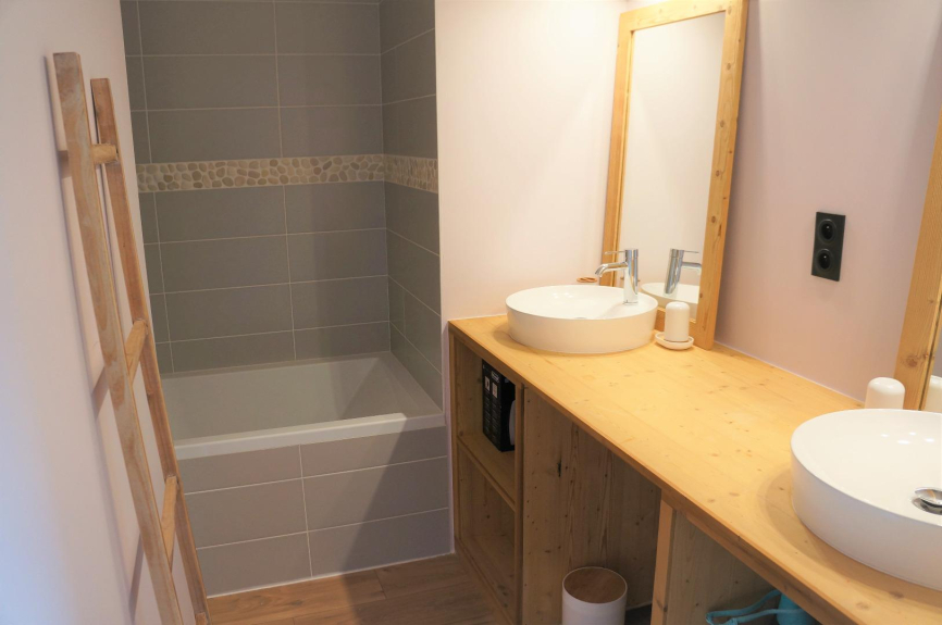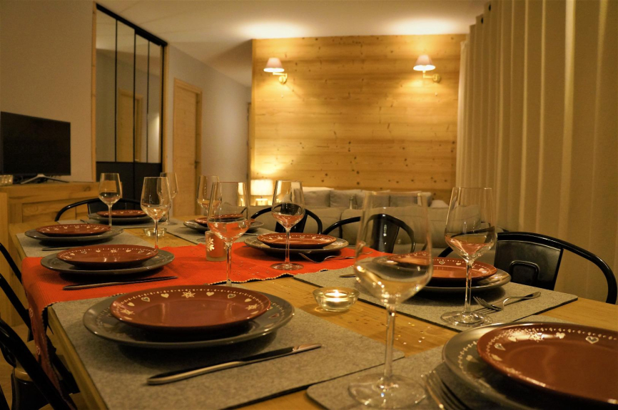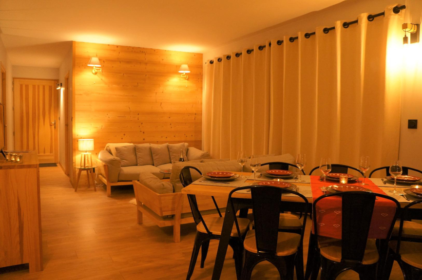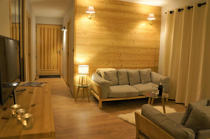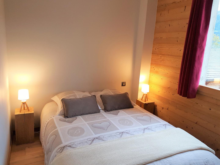 In uno chalet nuovissimo situato all'entrata di Samoëns sul lato sud, appartamento di 91 m² situato al piano terra e che si apre su una grande terrazza con superba vista panoramica sulla valle del Giffre.