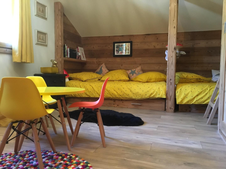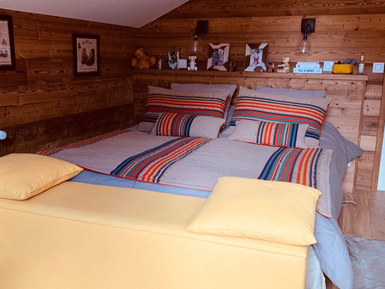 Una camera "dormitorio" con 1 letto matrimoniale e 2 letti estraibili per bambini