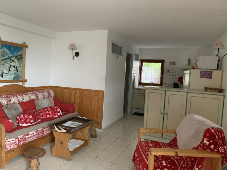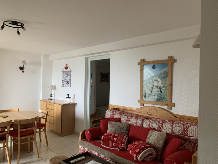 Appartamento al piano terra del nostro chalet Le Bouton d'Or, situato in una zona molto tranquilla sulle alture della località di La Toussuire. Beneficia di un PANORAMA ECCEZIONALE.