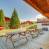 Ha poltrone e sedie a sdraio, diversi tavoli all'aperto, un barbecue a gas, un braciere e un trampolino.