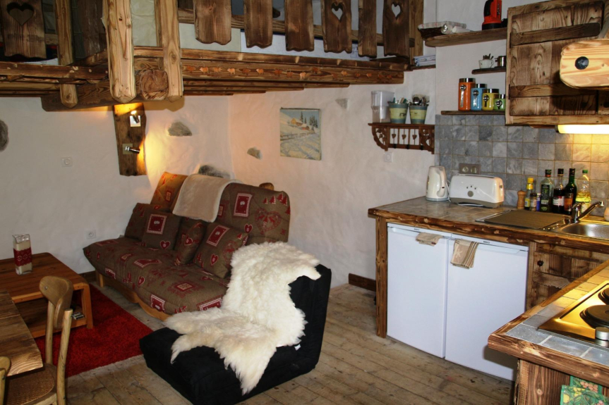 Hameau des Prioux, a circa 1750m di altitudine. Sopra Pralognan sulla strada dei ghiacciai della Vanoise e alle porte del parco nazionale. Completamente e magnificamente ristrutturato e arredato in puro stile montano, pavimenti in legno originali, muri a secco: un vero gioiello. Avete tutti i comfort, molto rari in uno chalet di montagna, tra cui elettricità, doppio frigorifero, cucina, bagno con doccia italiana, WC separato. Ma rimane uno chalet di montagna con spazi ristretti e una finitura "alta montagna". La superficie del pavimento è di circa 50m2, divisa tra la camera da letto inferiore (circa 10m2), il bagno, la toilette e il corridoio (circa 5m2), il primo piano: cucina, soggiorno e zona pranzo (circa 20m2), e infine il mezzanino sotto il soffitto (circa 5m2).