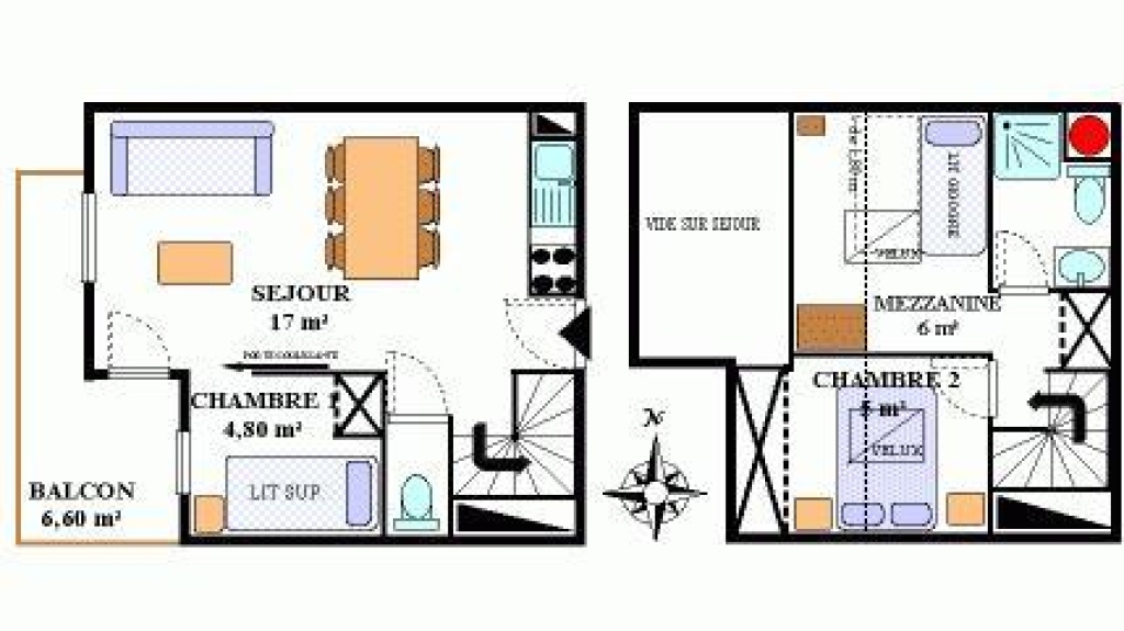 L'affitto di 47m2 comprende un soggiorno con angolo cottura e zona soggiorno con televisione, 1 WC, e una camera da letto con letti a castello. Al piano superiore: 1 camera da letto soppalcata chiusa con letti a rotelle, una camera da letto indipendente (letto 140) e un bagno, cioè 3 camere da letto.