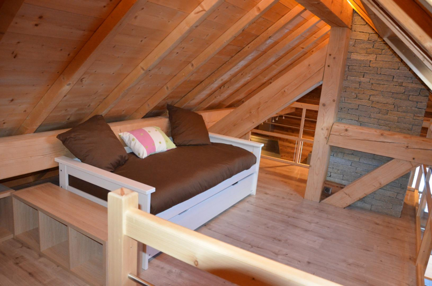 Appartamento nu in una casa di paese per 10 persone, classificato 3 stelle, con una superficie di 130 m² composto da 1 camera con 1 letto matrimoniale in 160, 1 camera con 2 x 2 letti a castello, 1 camera sul mezzanino con 1 letto matrimoniale in 140, balcone sul mezzanino con letto estraibile per 2 x 1 persona o 1 x 2 persone