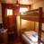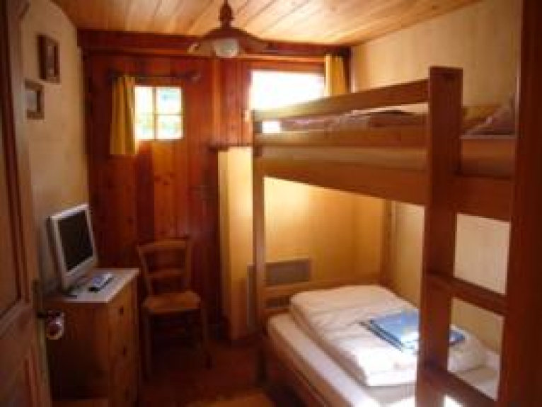 2 letti a castello * in 90 cm con piumoni, imbottiture e cuscini, 1 chiffonier, 1 armadio, 1 sedia, 1 sgabello, piccola TV a schermo piatto
