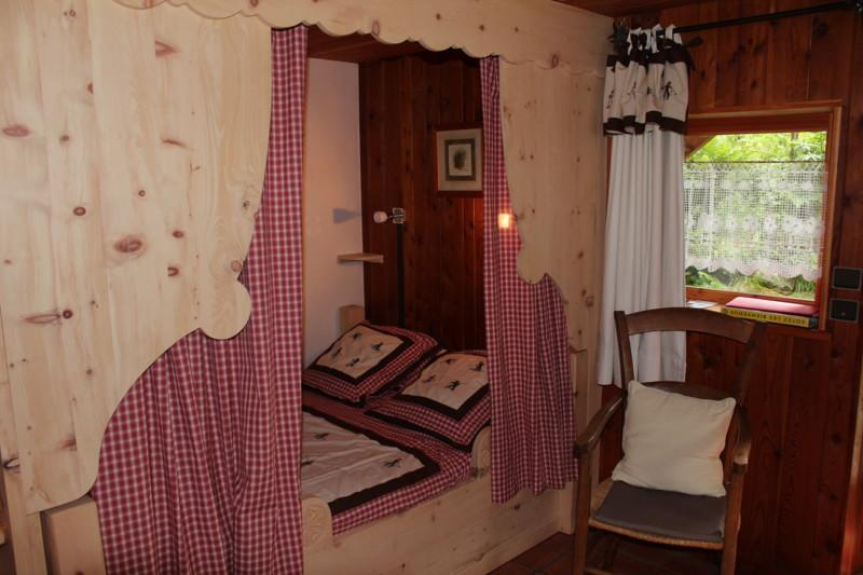 "Letto da pastore (chiuso su 3 lati e chiuso da tende) che dorme 140x190, piumino, 2 cuscini 50x70 e 2 cuscini 60x60), armadio incorporato alla fine del letto.