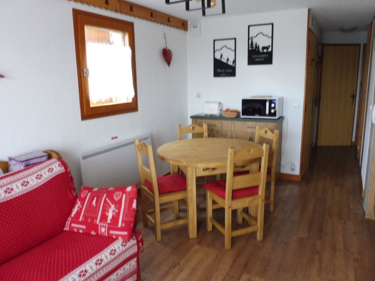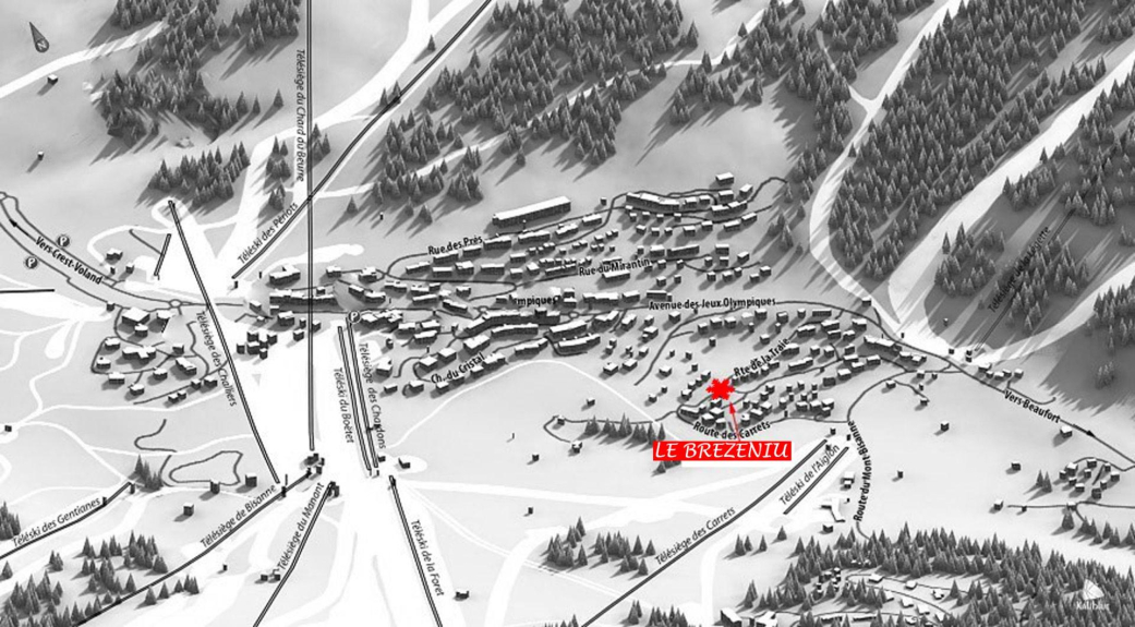 Vicino ai negozi (supermercato, negozio di articoli sportivi...), alla seggiovia di Les Carrets e al punto d'incontro della ESF (Scuola francese di sci).