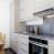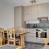 Cucina aperta sul soggiorno, piano cottura in vetroceramica, microonde, forno tradizionale, lavastoviglie e frigorifero/congelatore.