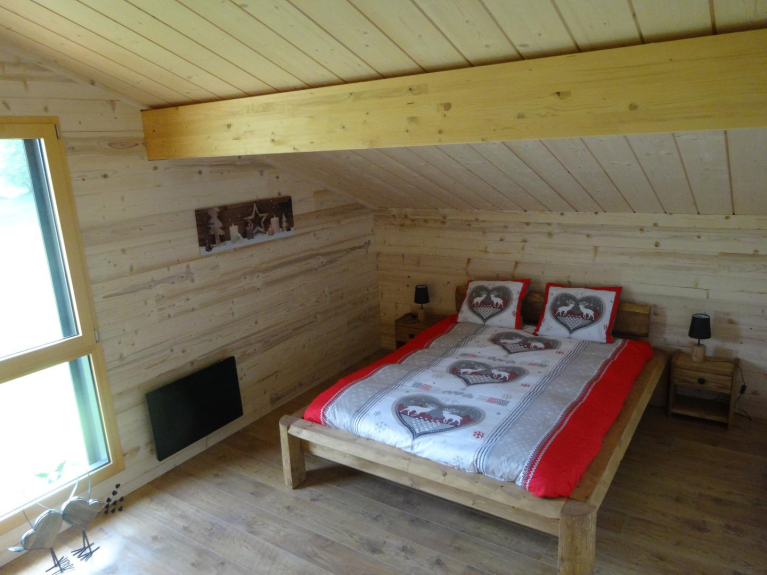 Idealmente rivolto a sud, si può godere con la famiglia o gli amici, uno chalet di 150 M2 con 3 belle camere da letto, una toilette e un grande bagno con vasca da bagno 2 posti e una grande doccia 160/90 e 2 lavandini.