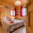 La decorazione è tipica (tende, doppi tendaggi, picconi, vecchi sci, lambris, ecc.).