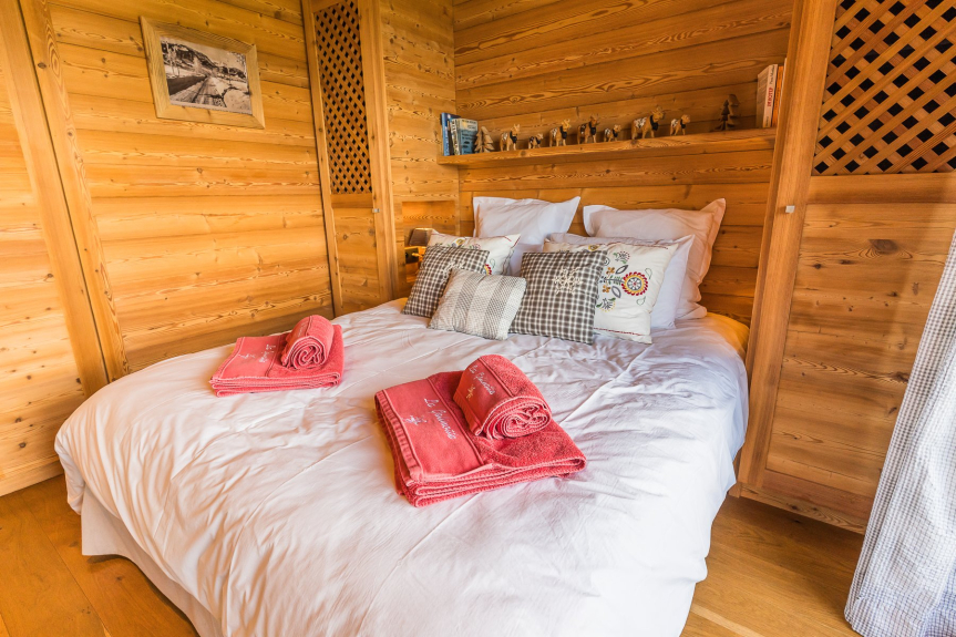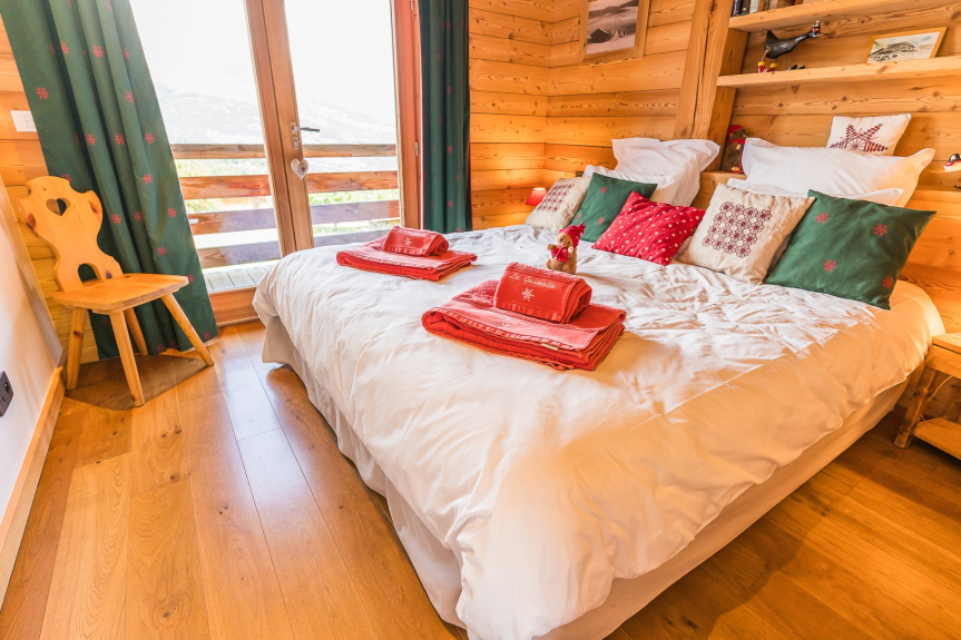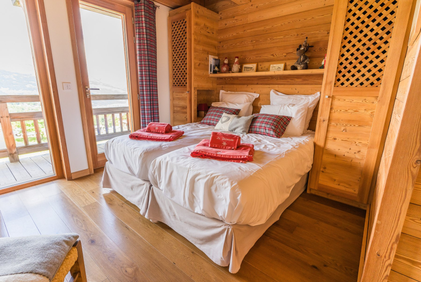 Le 5 camere da letto su due piani possono ospitare fino a 10 persone. Sono tutte arredate in un caldo stile savoiardo e dispongono di armadi a muro. 4 di esse hanno accesso a balconi da cui si gode la vista sulle montagne.