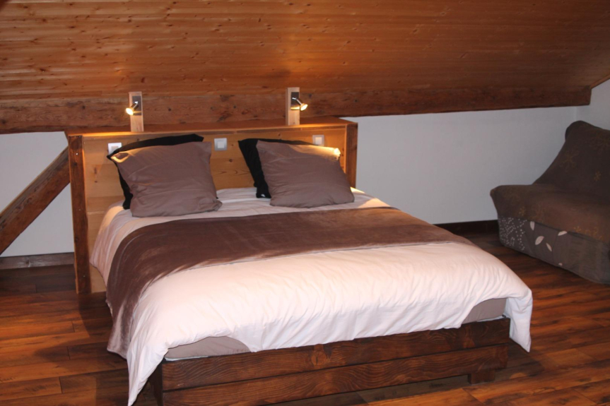Camera 1: balcone con vista sul Mont Joly e il massiccio del Fiz, un letto matrimoniale e un'alcova con 2 letti singoli, un bagno (con doccia e lavabo, asciuga asciugamani) e un WC indipendente, un armadio a scaffali e un armadio.