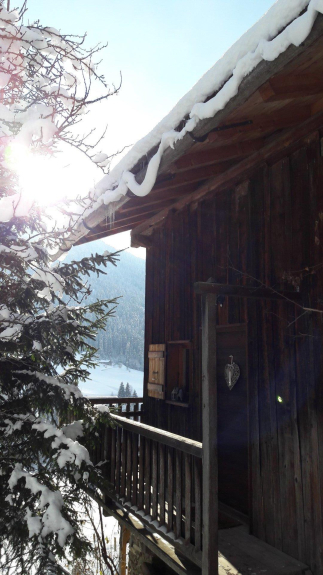 Chalet con interni in legno spazzolato e vista sulle montagne, a 50m dalla strada.