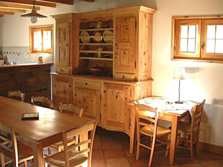 Area sciistica di Valloire-Valmeinier. Chalet molto confortevole, molto tranquillo sul bordo della foresta. 4 grandi camere da letto + 2 mezzanini. Molto pratico: deposito sci privato ai piedi di una nuova seggiovia smontabile a 6 posti a 800 m dallo chalet.
