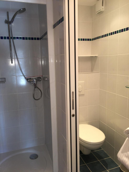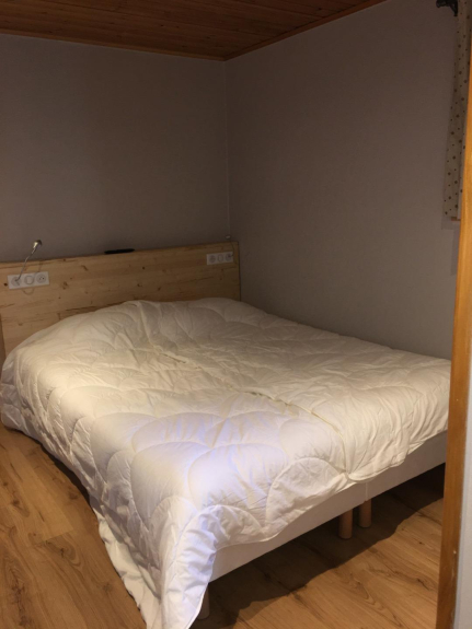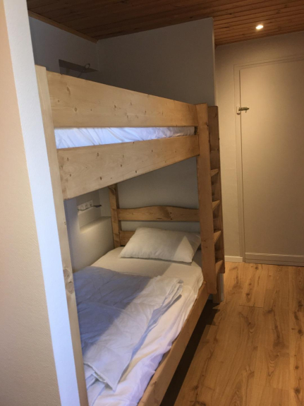 Al livello inferiore, ci sono due camere da letto: una con un letto matrimoniale (separabile in due letti singoli) e due letti a castello, bagno e WC separati. Un'altra camera da letto ha un letto matrimoniale e un bagno e WC in camera. Questa camera ha accesso diretto alla terrazza del piano terra inferiore. Un secondo ingresso conduce allo chalet dal piano terra inferiore.