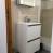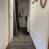 -Un piccolo corridoio che conduce a una toilette separata e a un piccolo bagno con doccia dotato di lavabo e cassetti, un mobile da bagno e una doccia spaziosa.