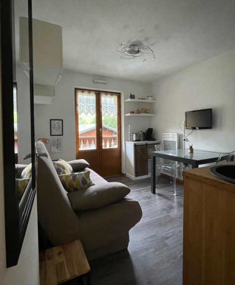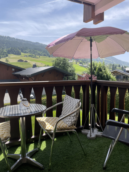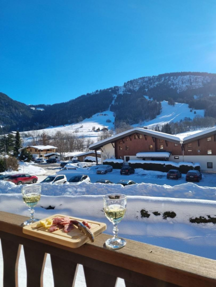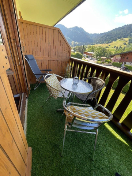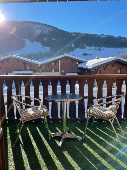 Il piccolo balcone è dotato di tavolo e sedie. È molto piacevole perché è esposto a sud con vista sulle piste da sci.
