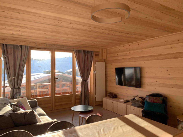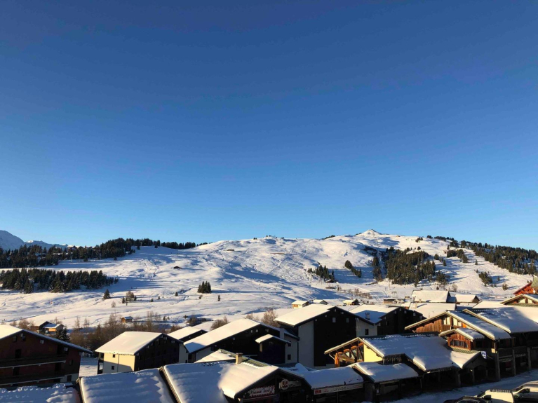 - Balcone esposto a sud con vista sulle piste del Mont Bisanne e l'avenue des JO (nel cuore della stazione)