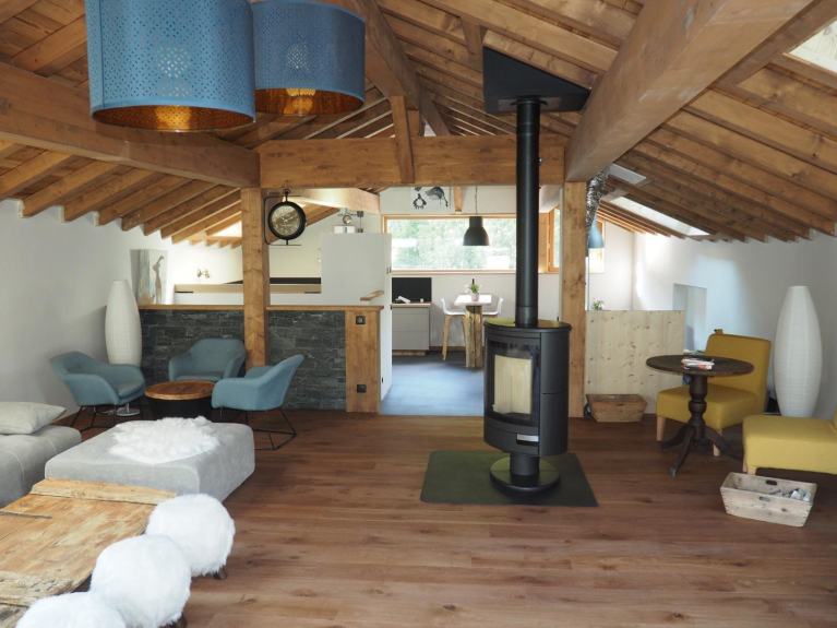 - Il nostro chalet è stato progettato in modo che possiate passare momenti indimenticabili e conviviali con la vostra famiglia o gli amici. Il salone molto grande vi permetterà di passare delle serate calde tutti insieme al bar, al tavolo o nel salone contemplando la chiesa molto originale di Champagny.