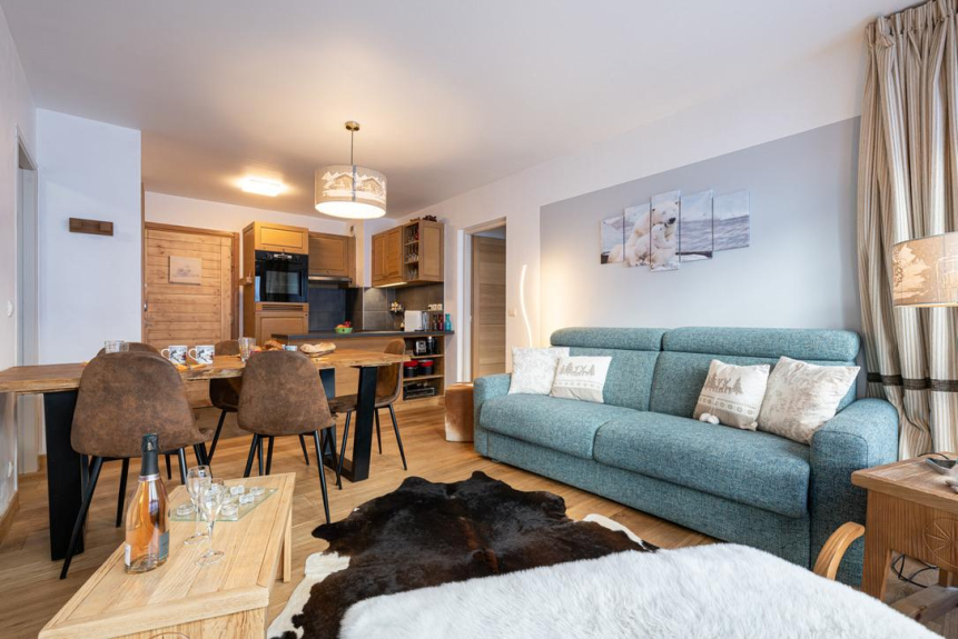 Situato nella residenza 5* "Les Terrasses d'Eos", bellissimo appartamento composto da: ingresso con armadio, cucina aperta su soggiorno con terrazza, due camere con due bagni. Armadio per gli sci e parcheggio coperto.