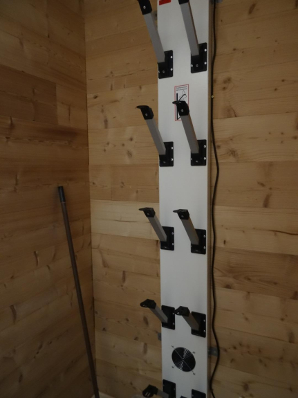 Ingresso con asciuga scarpe elettrico e deposito sci esterno chiuso.