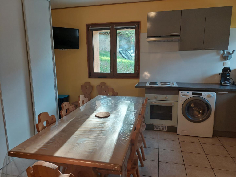 Per affittare per le vostre vacanze un affascinante mezzo chalet di 65 m², in una zona tranquilla, a 100m dai piedi delle piste e a 50m dai negozi, con una vista molto bella sulla valle della Vanoise.