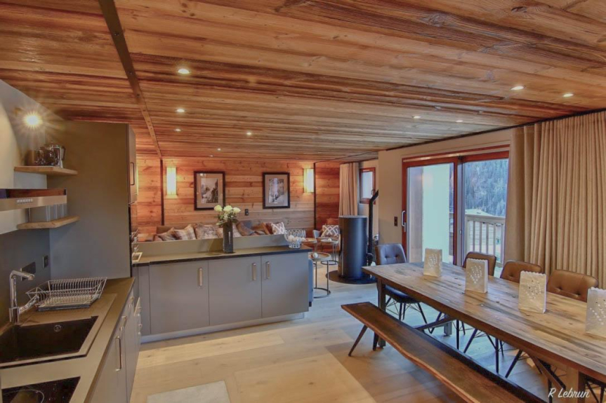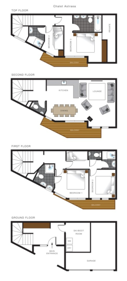 Lo Chalet Astrée è un bellissimo chalet di recente costruzione, pieno di fascino e carattere montano e a meno di 2 minuti a piedi dall'impianto di risalita. Ci sono 2 suite familiari e una camera doppia con bagno, per un totale di 11 persone. Lo chalet si sviluppa su 4 piani. Il piano terra ha un deposito sci con armadietto riscaldato per gli scarponi e lavatrice/asciugatrice, garage per 1 auto e un vialetto. Il primo piano ha una camera da letto matrimoniale con letto king size, bagno privato con doccia, lavabo e wc e accesso al balcone. C'è anche una suite familiare su questo piano che comprende una camera da letto matrimoniale con letto king size, bagno con doccia grande, lavabo e toilette separata. Una camera a castello con letti a castello fatti a mano, in legno massiccio, è accanto alla camera matrimoniale. Il secondo piano ha un soggiorno a pianta aperta con sontuosi divani, una stufa a legna, un grande tavolo da pranzo e una cucina moderna completamente attrezzata. C'è anche una toilette separata su questo piano. Un grande balcone corre lungo la lunghezza della stanza con vista sulla montagna. L'ultimo piano ha una camera tripla a castello con un bagno con cabina doccia e lavandino. I letti sono fatti a mano e in legno massiccio. La suite principale con letto super king size si trova nella porta accanto, con il suo balcone e un bagno con vasca, lavandino e WC.