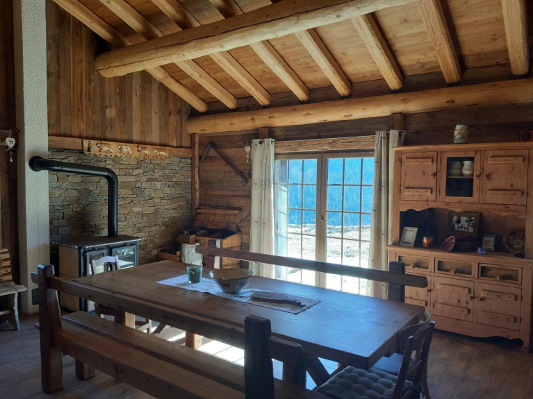 Chalet alpino situato a 10 minuti di auto da Lanslebourg su una pista forestale. 40 minuti d'auto dall'Italia. Si trova nel cuore di chiudere con una vista mozzafiato sulla valle di Bessans il passo di Mont-Cenis la Dent Parachée.