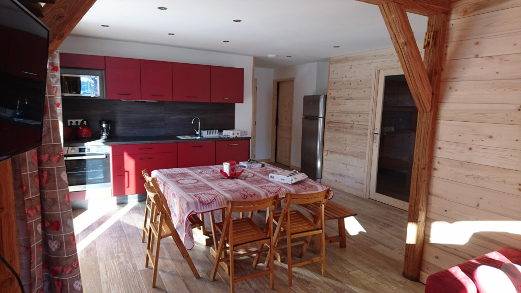 Lo chalet le Grand Cerf dispone di due appartamenti ai piedi delle piste con parcheggio privato. Cibo e negozi nelle vicinanze. Appartamento per 8 persone di 65 m2 di cui 3 camere da letto e un angolo di montagna, soggiorno, sala da pranzo, cucina