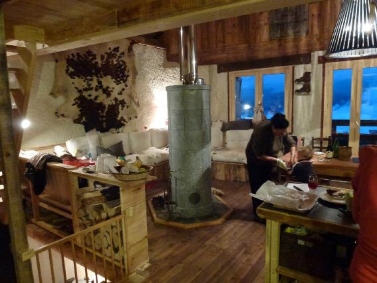 Laurence è della valle della Savoia, Luc è delle Fiandre, lei lavora nel settore culturale e lui è un artista visivo. Con i bambini amiamo stare nel nostro chalet di famiglia ogni volta che possiamo. Immaginate, lo chalet appartiene alla nostra famiglia da quando è stato costruito nel 1820! È il contatto con la natura che è straordinario, 15 minuti a piedi dalla stazione di Les Arcs 1800, è abbastanza lontano senza essere totalmente isolato. Originariamente venivamo allo chalet solo d'estate, ma a causa del mio lavoro ho avuto il grande piacere di immaginare uno chalet caldo e molto personale dove è molto piacevole stare sia d'estate che d'inverno. Per noi, la cosa migliore è venire qui con i nostri sci e i nostri zaini, è una straordinaria sensazione di libertà. Naturalmente bisogna essere sportivi, amare le montagne, i grandi spazi aperti ed essere alla ricerca di qualcosa di diverso, di unico. Questo è anche senza dirvi l'incredibile vista che abbiamo su tutta la catena del Monte Bianco, una vista che non ci stanca mai in estate e in inverno, dove i tramonti con un bicchiere in mano sulla terrazza sono .... di perfetta felicità. In estate abbiamo un tempo meraviglioso tra lunghe escursioni nella Vanoise, il parco nazionale è a una buona ora di cammino, corse in alta montagna verso il Monte Bianco italiano o intorno al Monte Pourri, non facciamo mountain bike, ma per chi lo ama lo chalet è sulle tracce dei migliori spot della Tarentaise. Quando arriva metà agosto, è tempo di raccogliere mirtilli, porcini e finferli.... In inverno uno dei nostri grandi piaceri è quello di essere i primi sulle piste prima ancora che la stazione apra e di tornare la sera quando tutto è vuoto di sciatori! Le serate intorno alla stufa finlandese, un buon bicchiere di Savoia bianco in mano, belle storie di montagna, o grandi discussioni sull'arte ci portano fino a tardi nel silenzio della montagna.