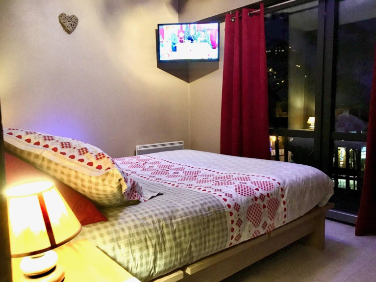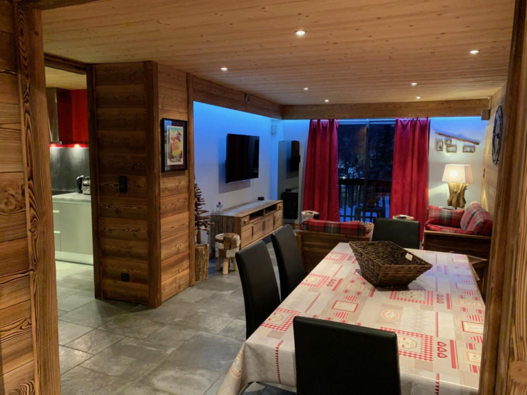 Armadio per gli sci. Balcone esposto a sud (11 m²) con 2 poltrone e tavolino. 1 scatola nel seminterrato per una macchina. Parcheggio collettivo non privato. Ascensore.