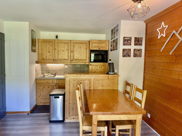 Zona cucina: microonde con grill, lavastoviglie, frigorifero, piano cottura in vetroceramica (4 fuochi)